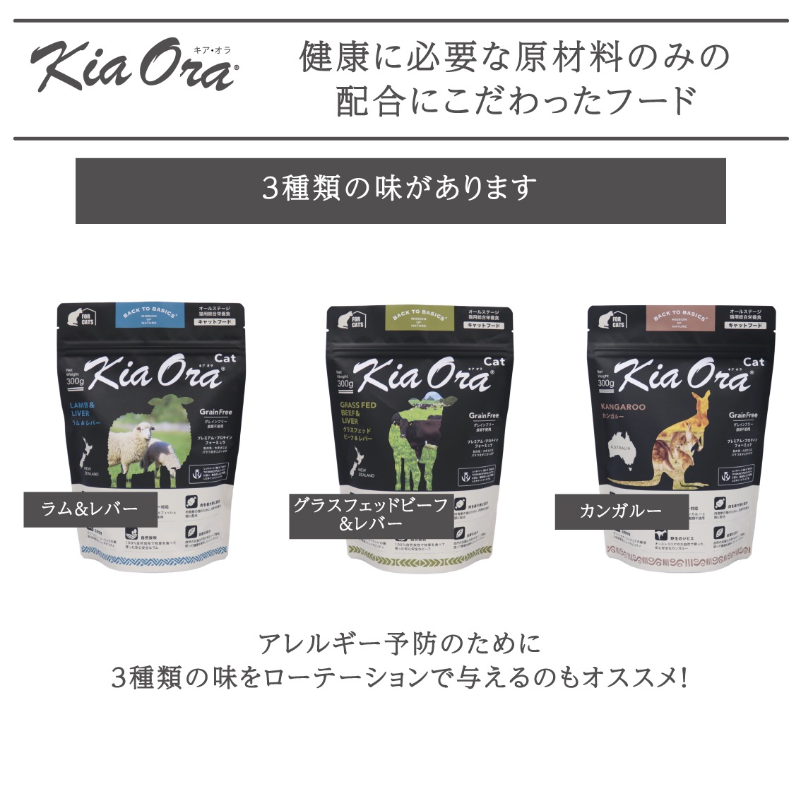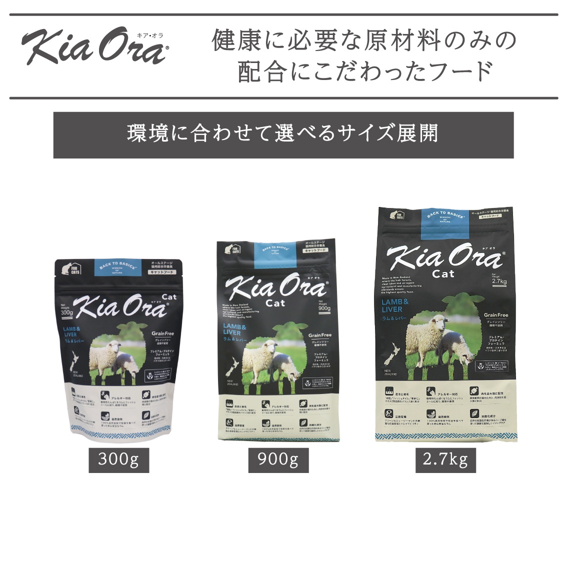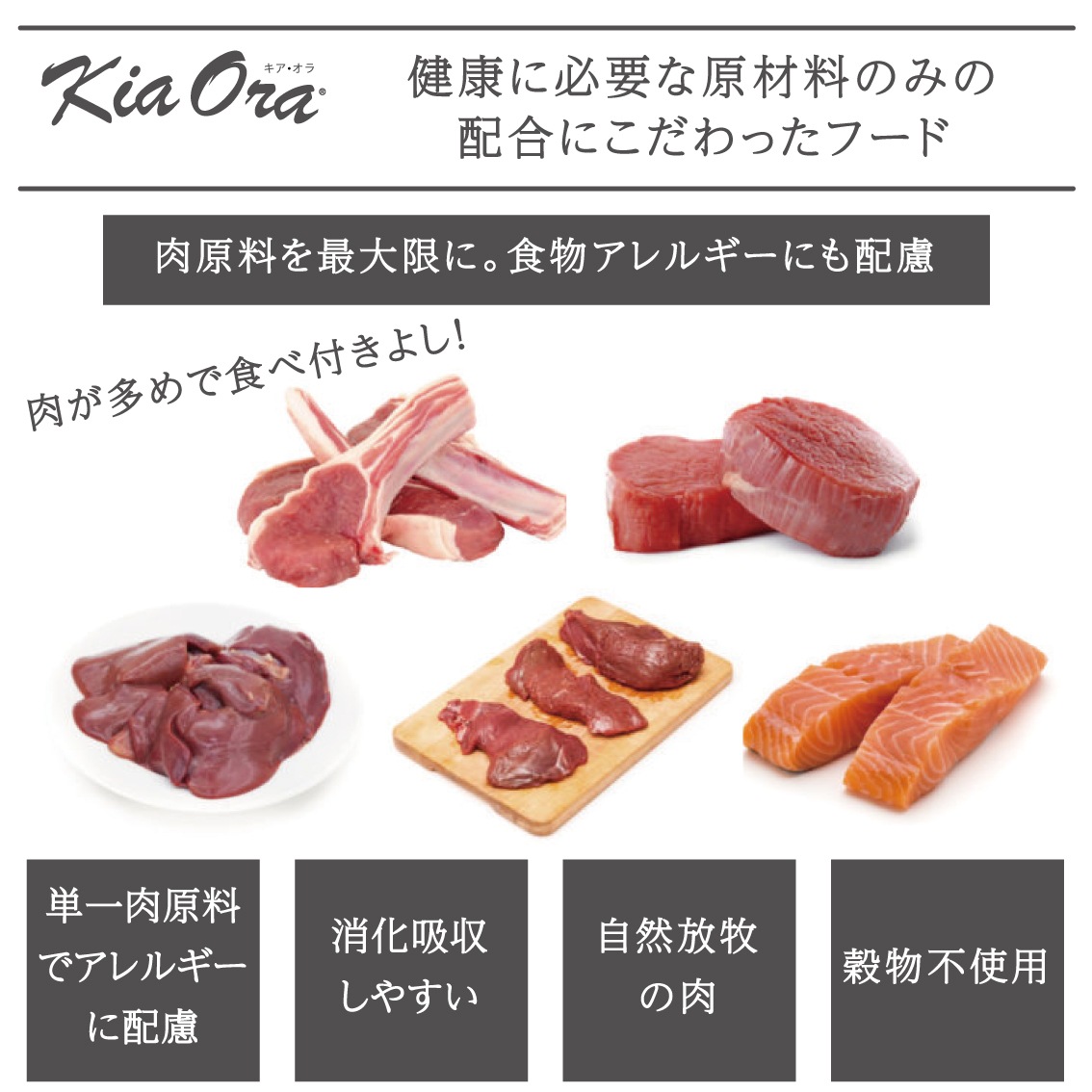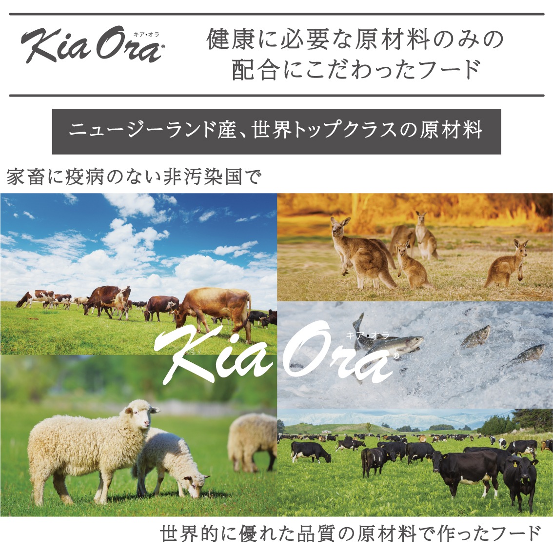 「キアオラ」は、自然のままの農園を有し、豊かな恵みを提供するきれいな海に囲まれた、家畜に疫病のない非汚染国ニュージーランドの原材料で作ったフードです。