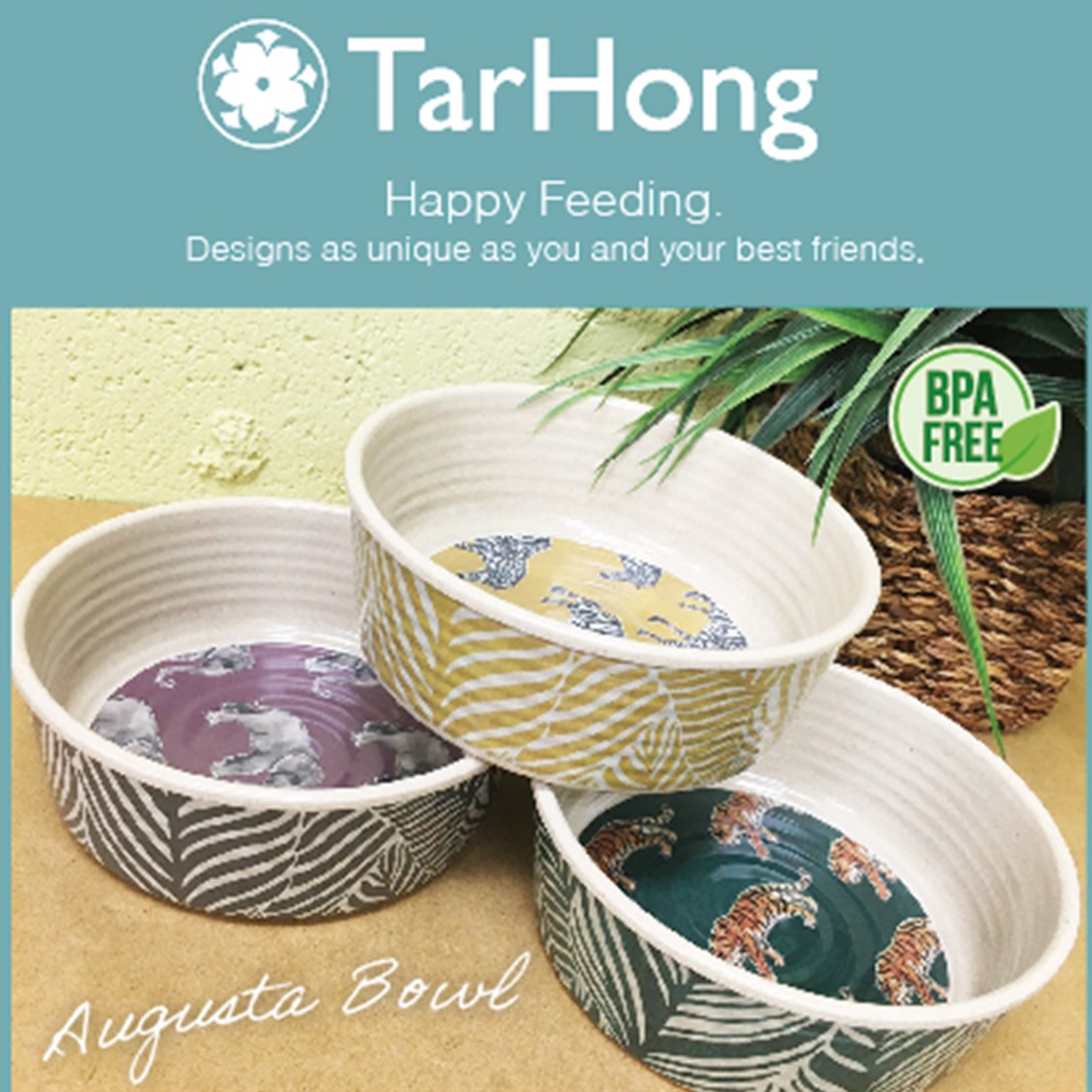 【検索語句】メラミン樹脂 食器 オシャレ アニマル柄 植物柄 竹パウダー 滑り止め 洗いやすい 食べやすい 犬 猫 食洗器対応 TarHong タールホン オーガスタボウル エレファント ゼブラ タイガー FREEBIRD フリーバード