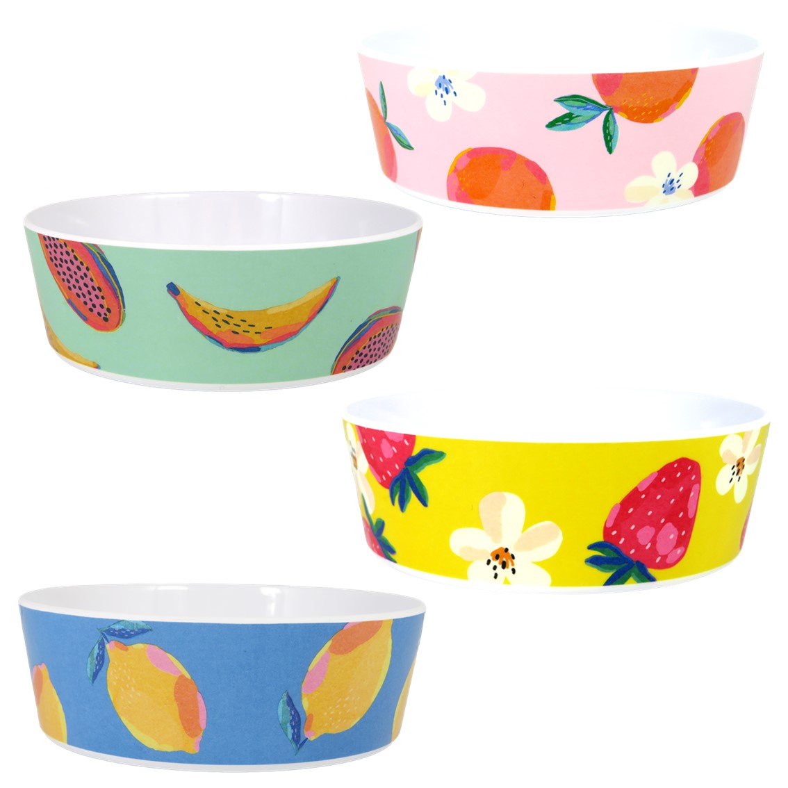 水彩タッチのフルーツがプリントされたメラミン樹脂ボウル。 華やかなデザインがお部屋を彩ります。 底面にはカタカタ音を防ぐ滑り止め付き。 |