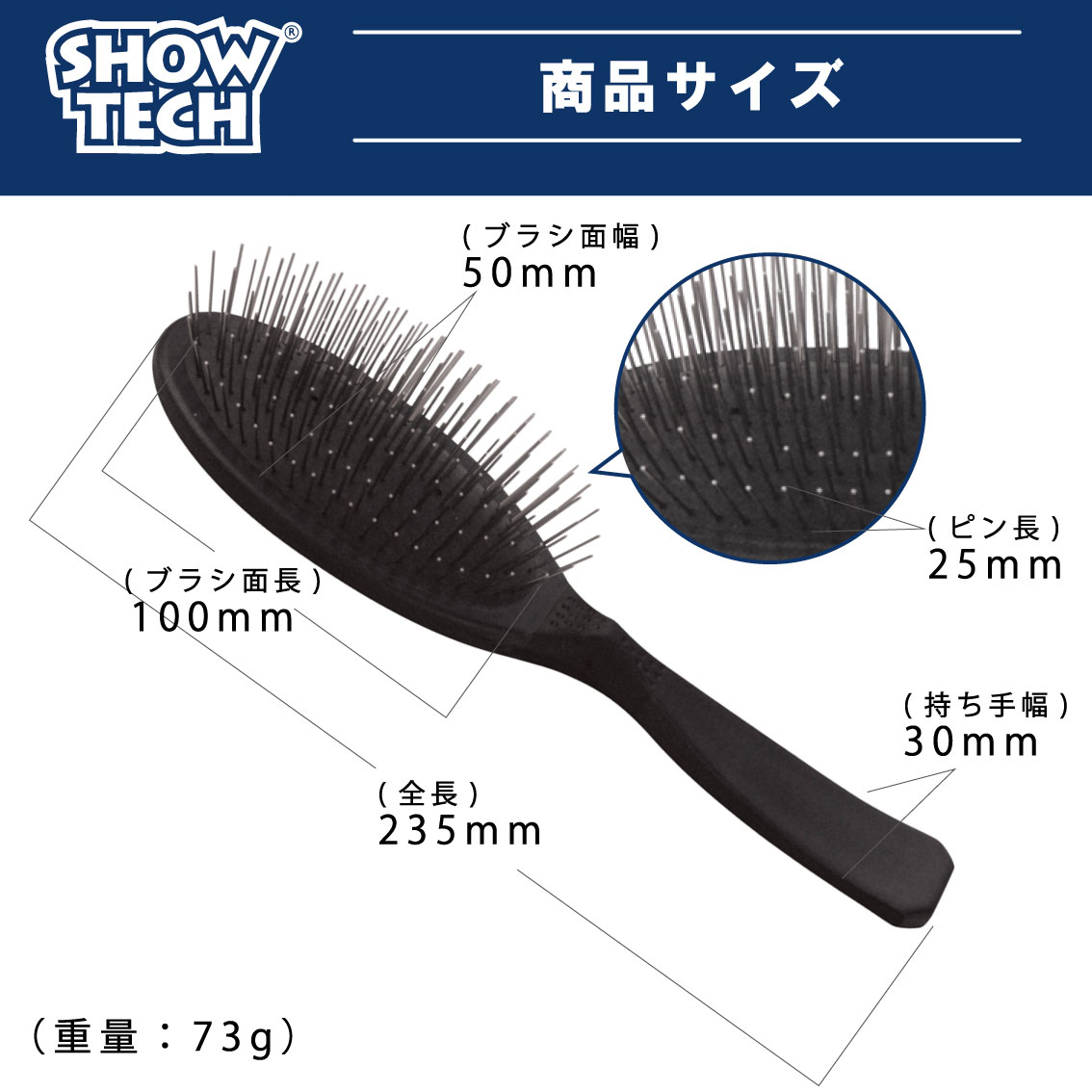 ◆本体サイズ:ブラシ面 100×50mm、ピン 25mm、全長 235mm