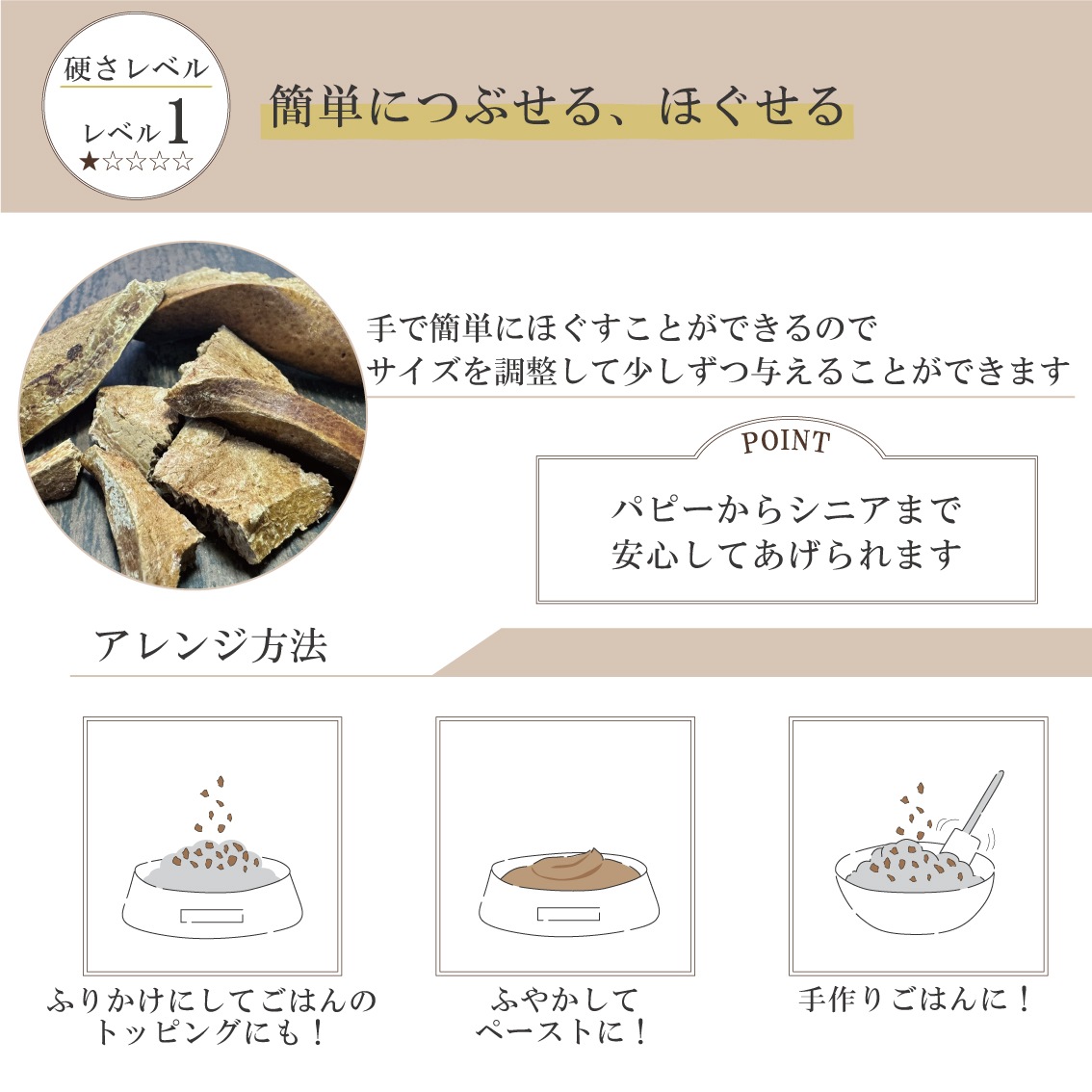 新鮮な国産豚レバーの栄養がギッシリ詰まったヘルシーおやつ。 シニア犬にうれしいビタミンAや鉄分が豊富に含まれています。 |