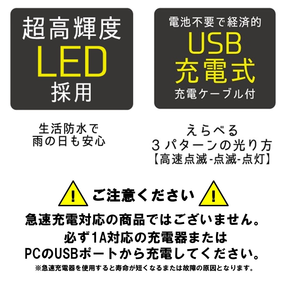 急速充電を行った場合、極端に寿命が短くなるまたは故障する可能性がございます。