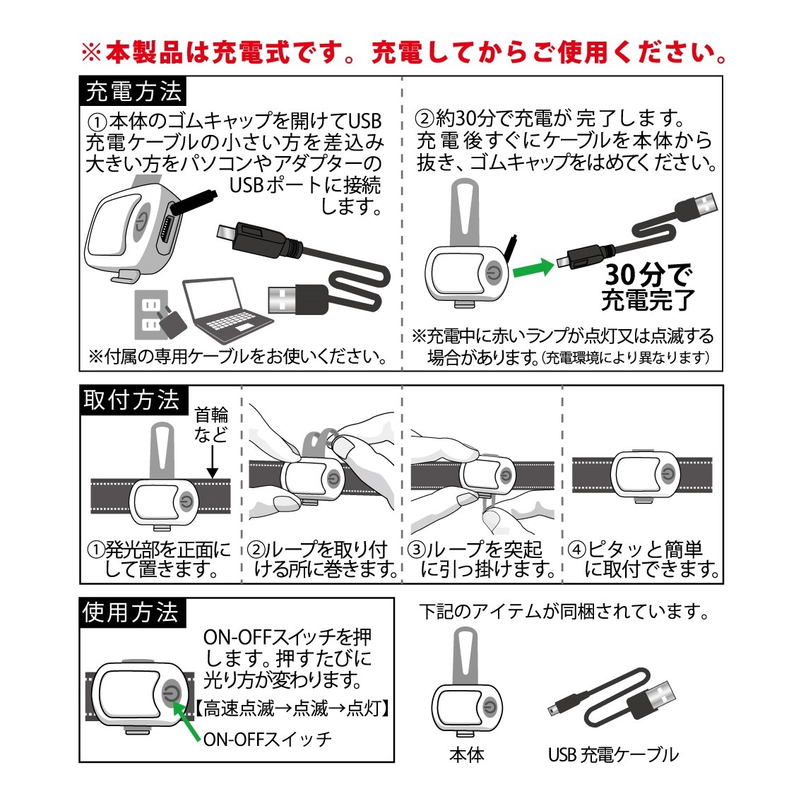 素材:ABS樹脂、シリコン、LED