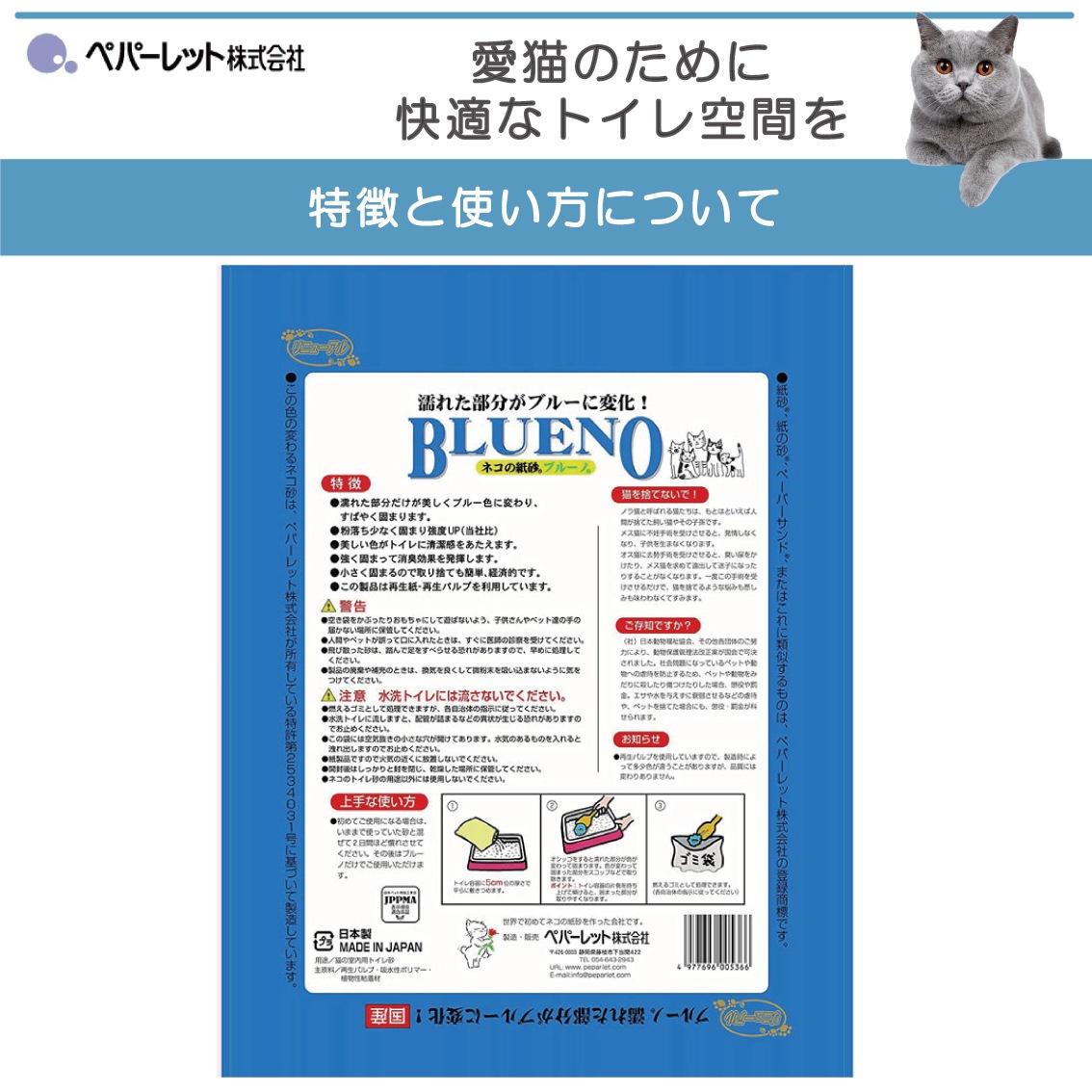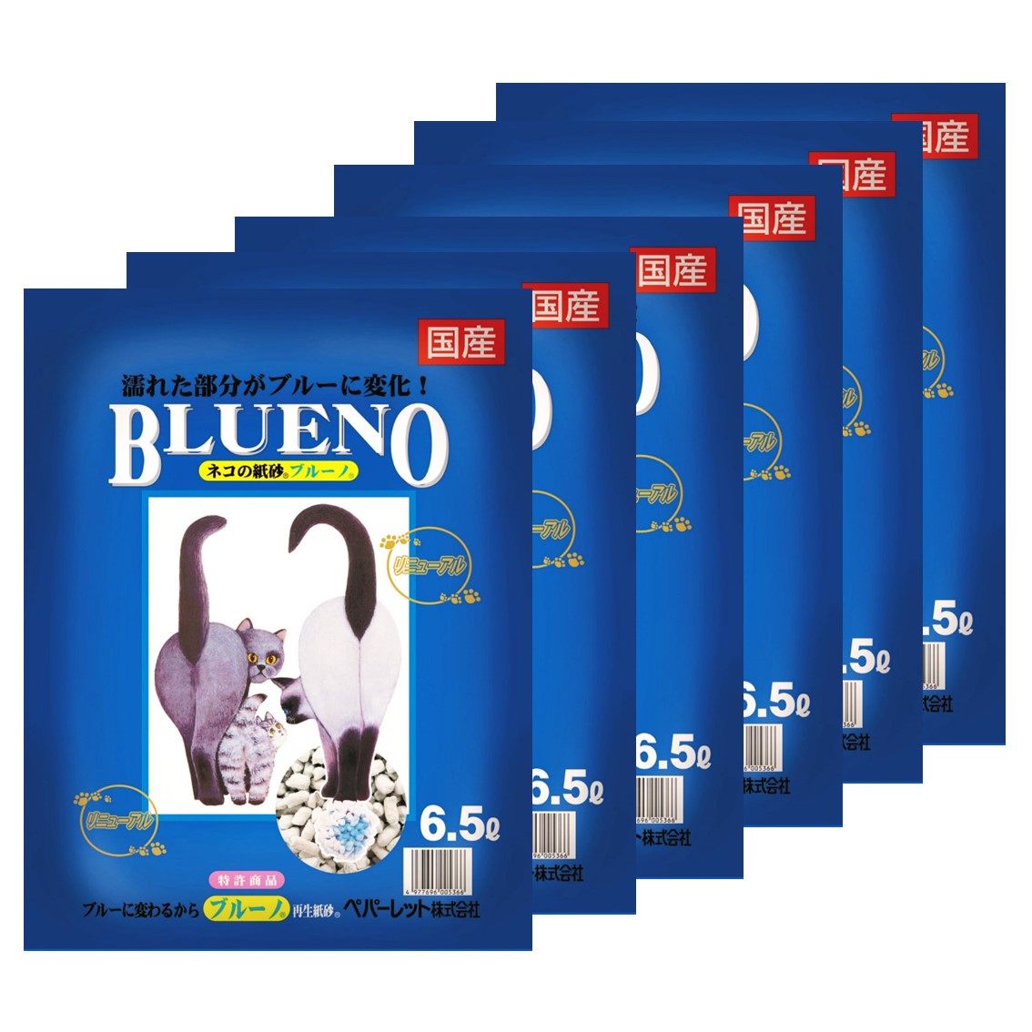 6袋セット 猫砂 ネコ砂 紙 固まる 色が変わる おすすめ 燃えるゴミ 消臭 ネコトイレ用品 送料無料 ペパーレット ブルーノ 6.5L FREEBIRD フリーバード cycs00536