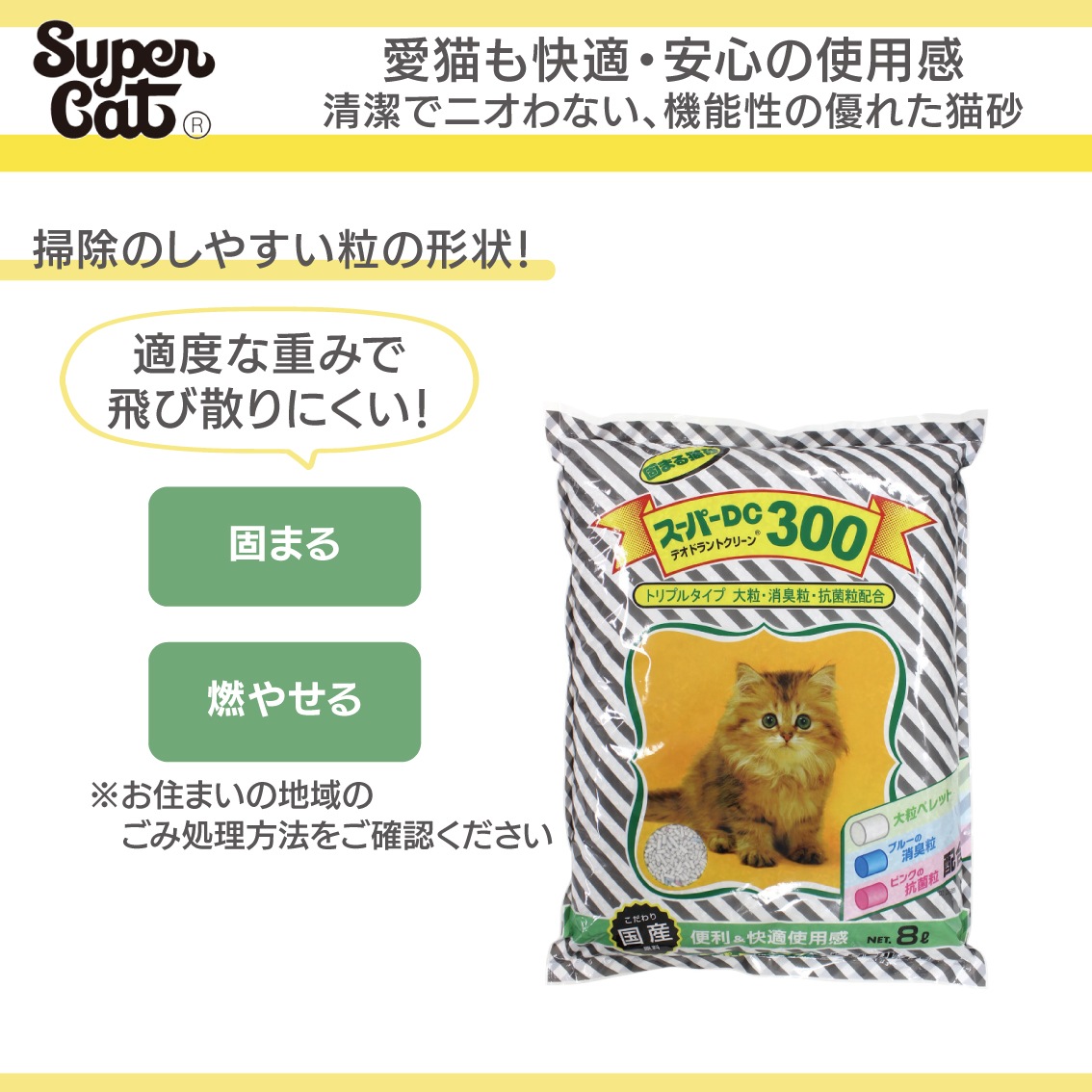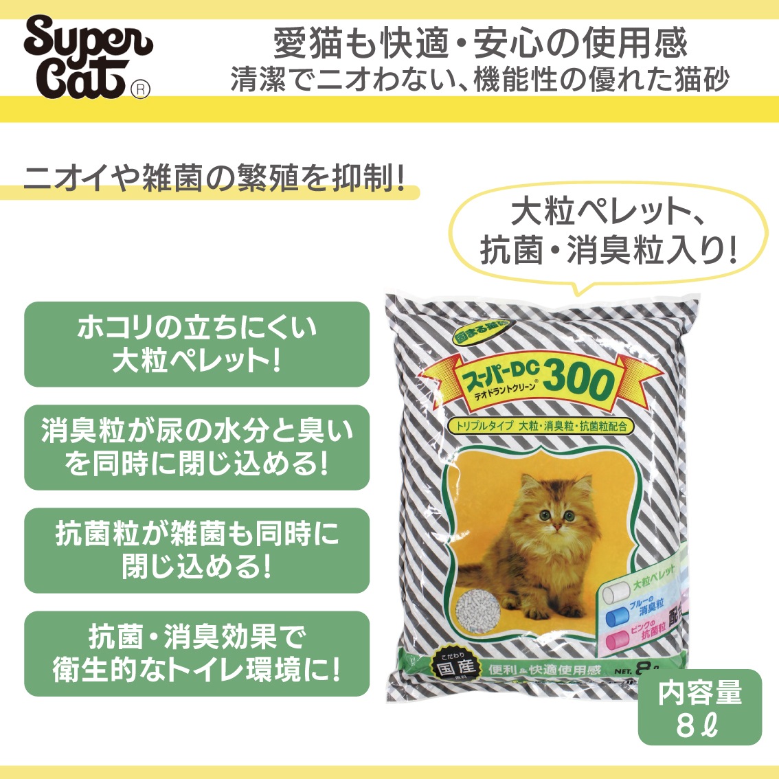 猫砂 ネコ砂 消臭 抗菌 国産 大粒ペレット スーパーキャット スーパーDC300 トリプルタイプ 8L FREEBIRD フリーバード