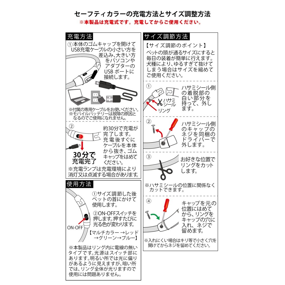 (充電時間:約30分 マルチカラー使用時:約4時間 単色使用時:約3時間)