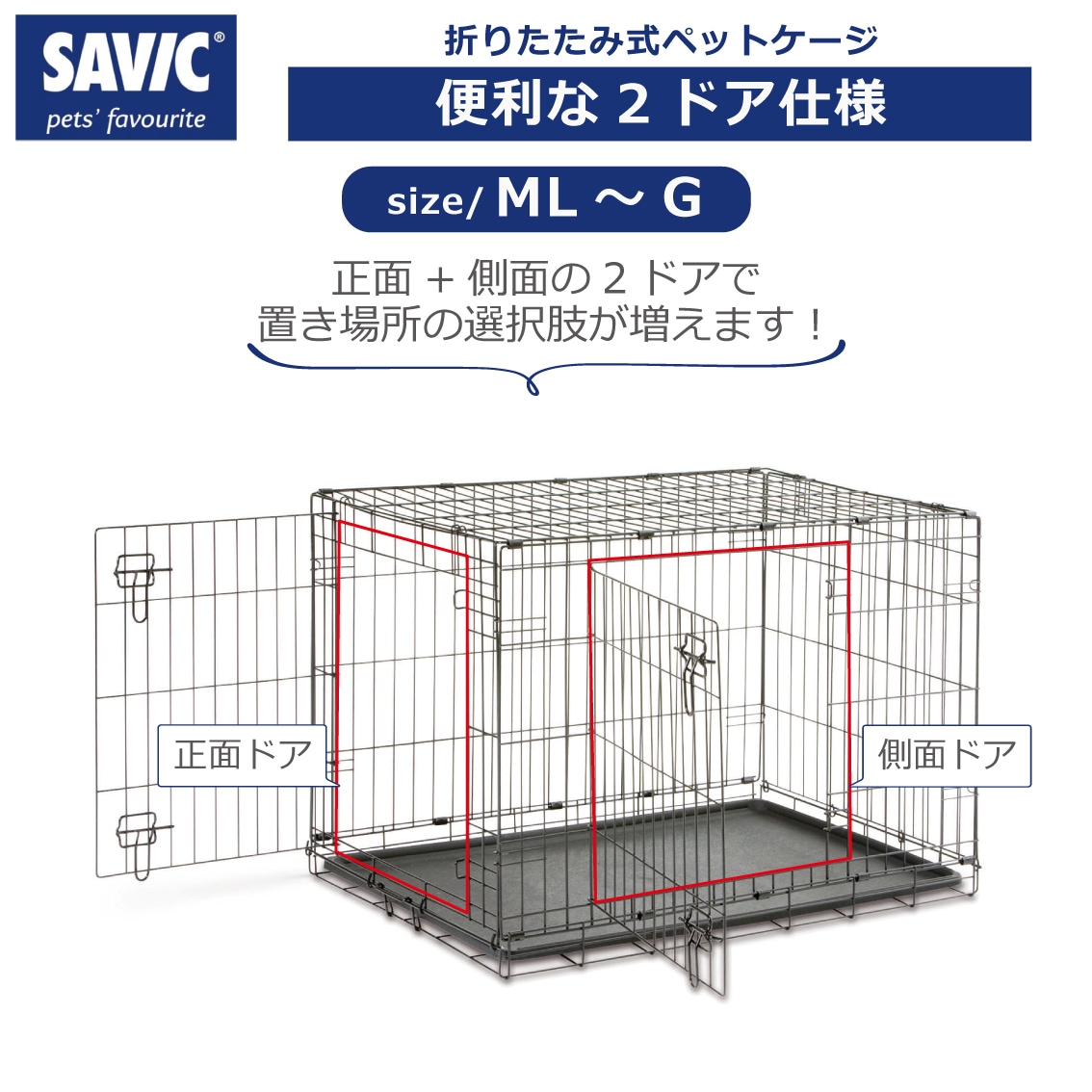 | 商品説明 | SAVIC ドッグコテージは、持ち運びに便利な折りたたみ式のペットケージです。 お部屋でのハウス用としてはもちろん、コンパクトに折りたたむ事ができるので、お出かけ時の移動用としても最適です。 また、トレーを引き出すことができ、日々のお手入れも楽に行うことができます。 |