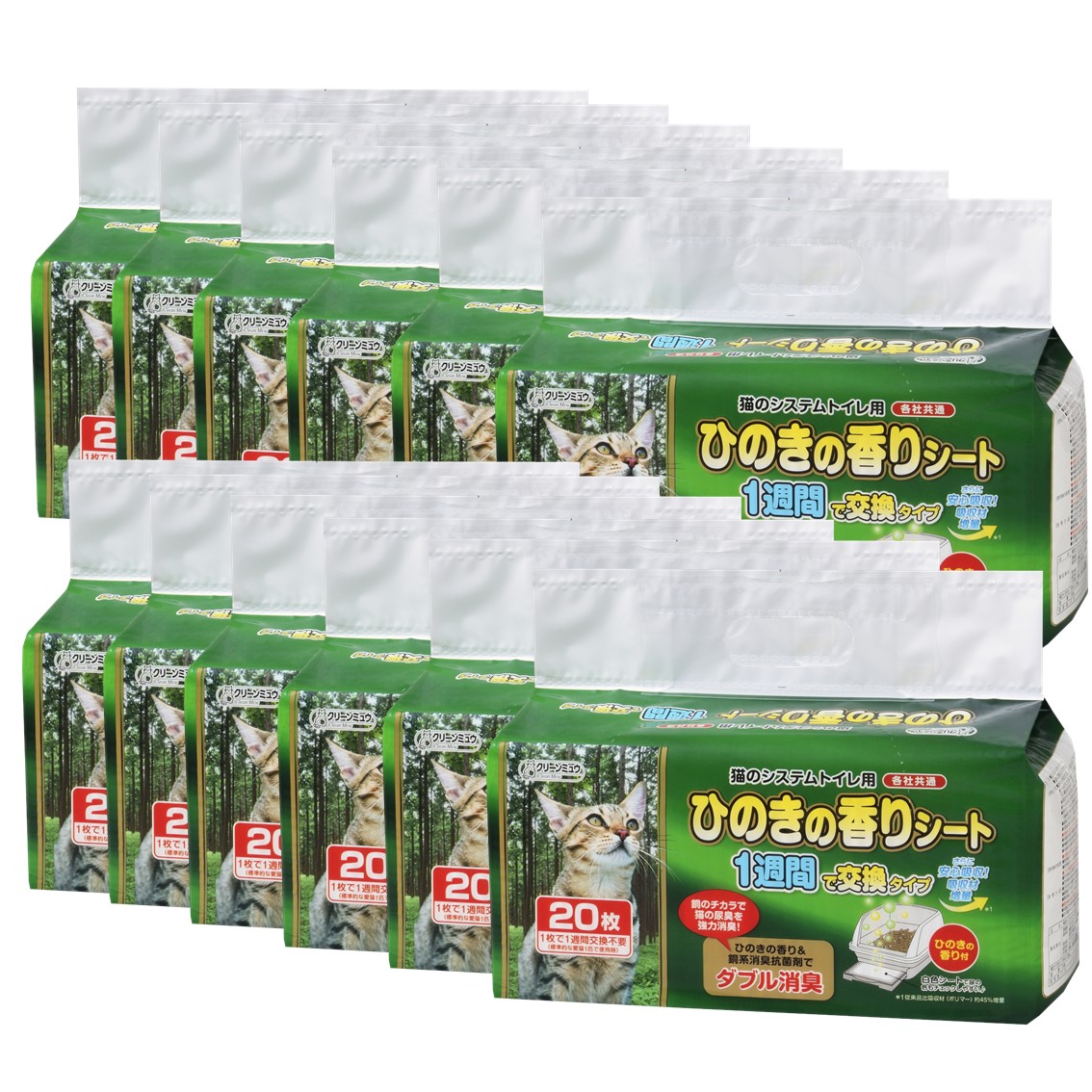 クリーンミュウ 猫のシステムトイレ用 ひのきの香りシート 1週間用 ×12個