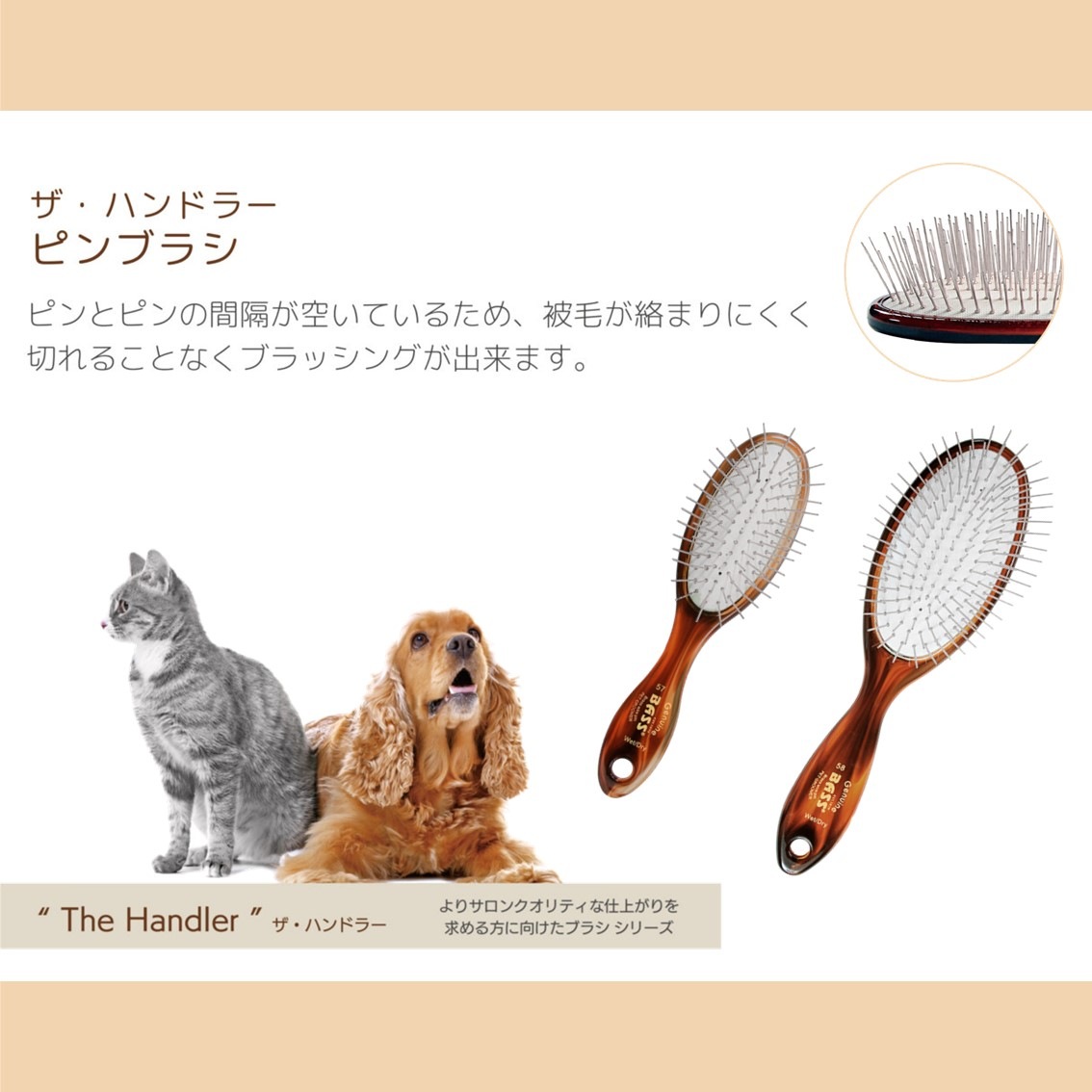 ザ・ハンドラーは、よりサロンクオリティな仕上がりを求める方に向けたブラシシリーズ。 ピンとピンの間隔が空いているため、被毛が絡まりにくく切れることなくブラッシングが出来ます。 |