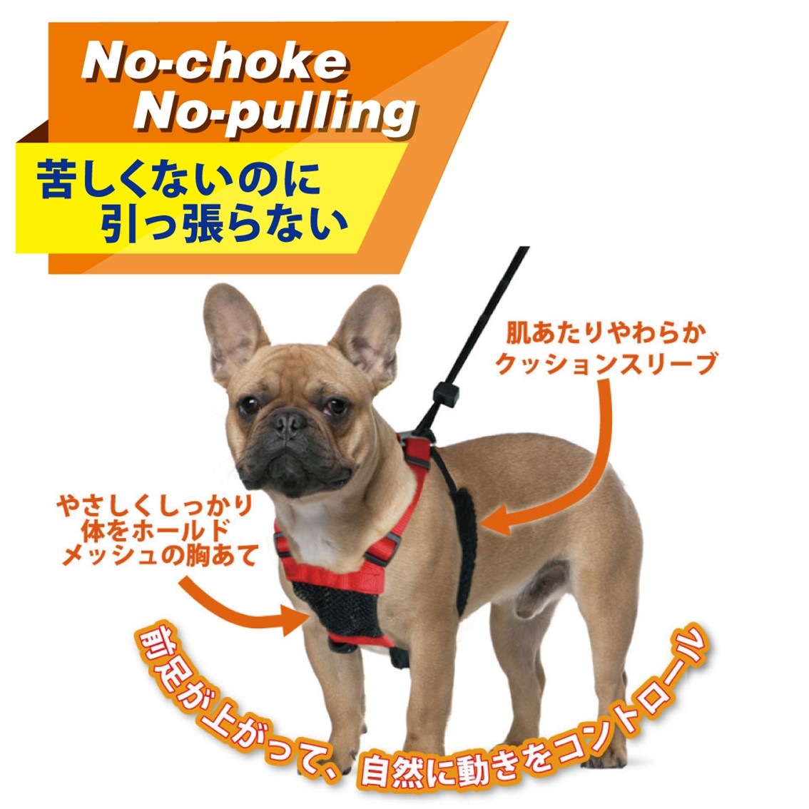 装着するだけで、愛犬の首や呼吸に負担をかけずに引っ張る力をコントロールできる、引っ張り防止胴輪です。 胸から背中に通ったストラップの動きが前足の動きを制御し、愛犬の引っ張る力をコントロール。 前足が持ち上がることで引っ張り防止させるので、胸が締め付けられず苦しくありません。 お散歩時に呼吸が荒くなりがちな短鼻犬に特におすすめです。 クッションスリーブが愛犬の前足脇部を優しく保護し、毛のすり切れや皮膚の損傷を防ぎます。 (脇当部に特許)胸部はムレにくい様、メッシュ素材を採用。 |